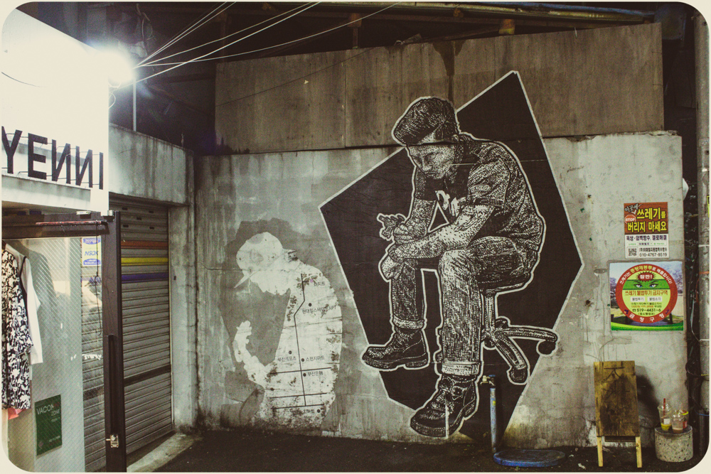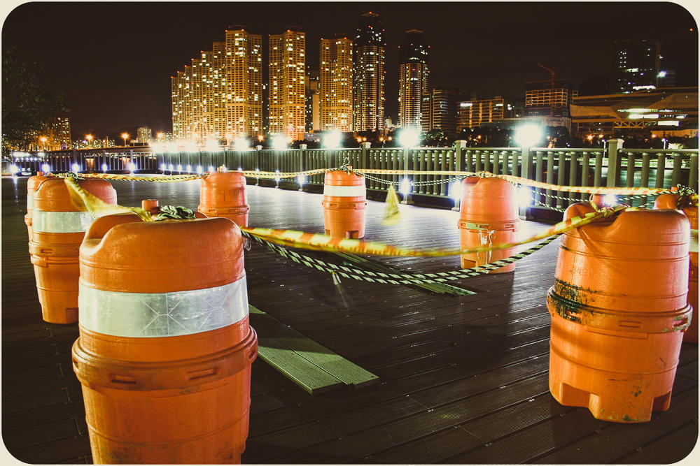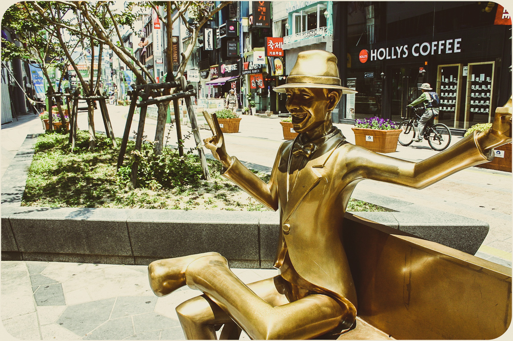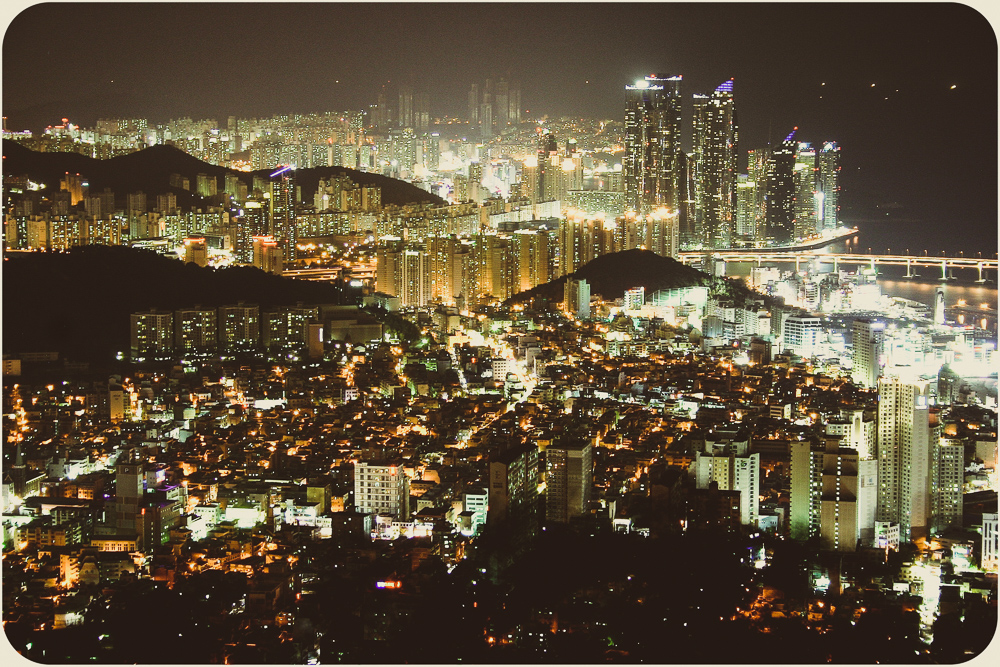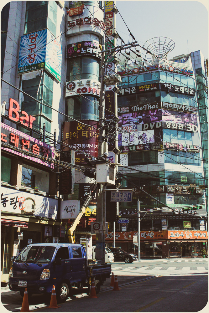 I’ve grown lazy in the heat. The photos show some of the city’s offerings but I’ve been sticking to my Dongnae district streets. The effect of familiarity maybe, not a lack of options. Busan’s self-governing rat race is more an amble. A major port city of three and a half million, she feels more a sprawling town, 770 square kilometers, the size of Calgary or Austin. It was the temporary capital during the Korean War when the North squeezed their opponents south and is closer to Japanese Kyushu than its own current capital of Seoul. For those who put stock in national longests, largests and world-record-setting, there’s the Nakdong River, Haeundae Beach and Shinsegae Department Store. The Guinness Book writ is out front. For the citizenry, they tend to be game. Waves will show up for an occasion and there are more by the year. Sand sculpture, fireworks and film have regular festival dates, seafood too with Jagalchi in October, but the new international pastime of oohing and ahhing with a beverage and a selfie stick has cause any day here. Water is a big reason why. Tourism and peace of mind make a point of granting access to all parts of the coast, from the cable car at Songdo to the cliffs of Oryukdo. Inland, the Oncheoncheon stream cuts a path beyond the elevated subway tracks at Busan National University to the more substantial Suyeong River. No surprise in Korea that it’s been adapted for human leisure with bike paths, badminton plots and swingy exercise machines that seniors seem to love. I’m scratching the surface. And scratching my head. Time to hit a mountain path at Geumgang Park or join the crowd on the Gwangalli strip. The patios fill up quick on a typhoonless summer night, patrons talking over their pints, watching the pedestrians watching everything else.