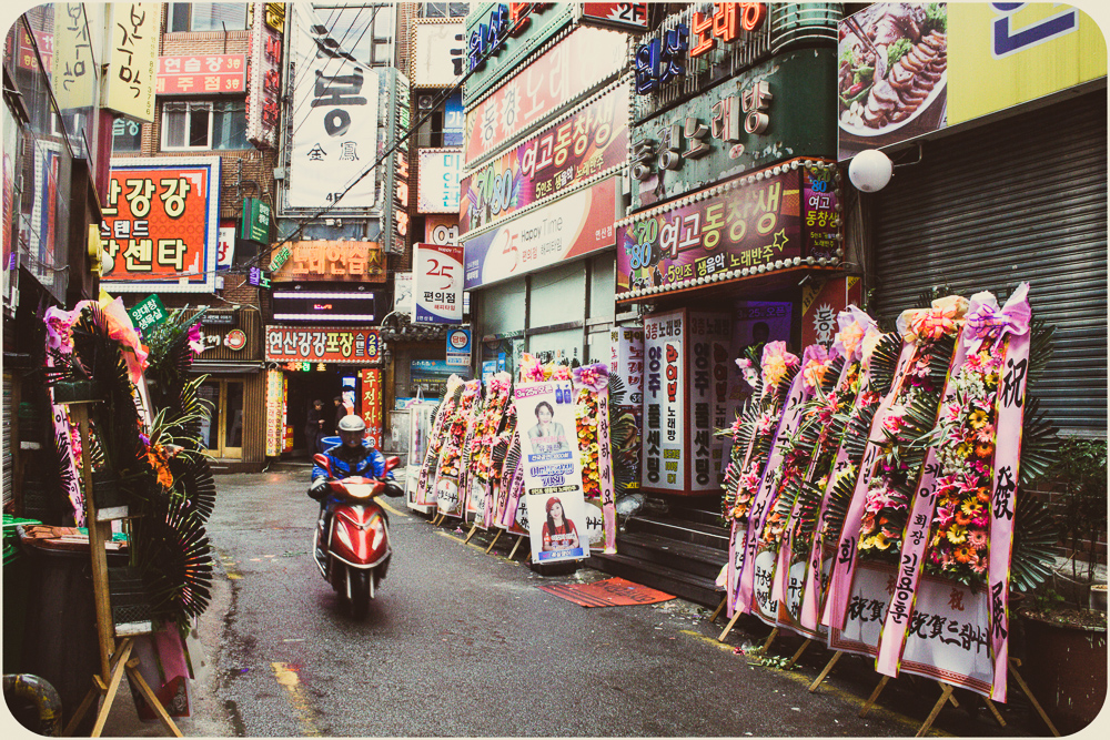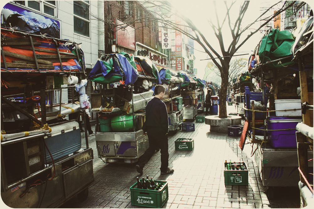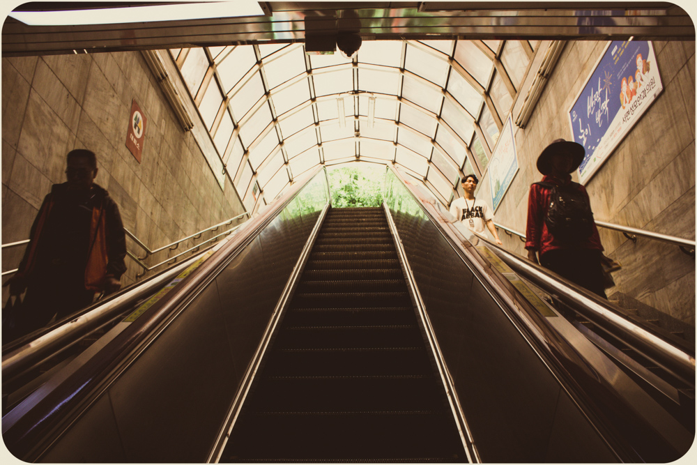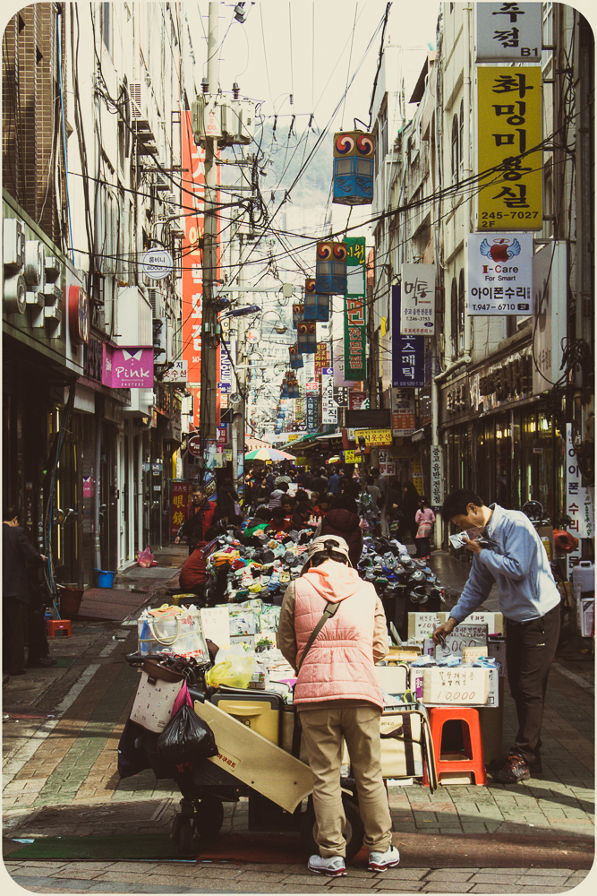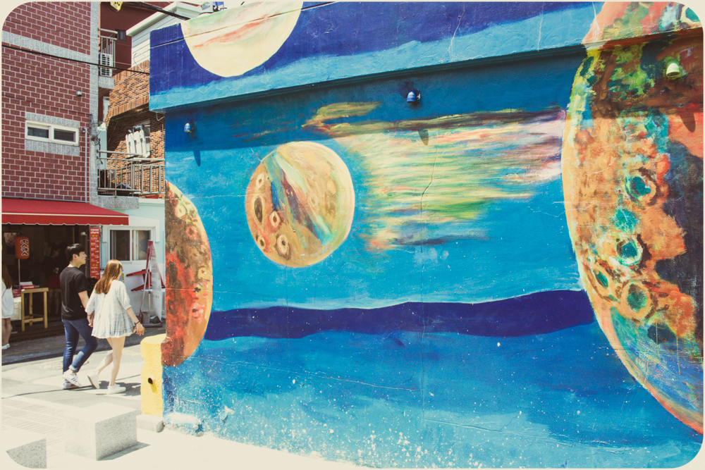 I’ve grown lazy in the heat. The photos show some of the city’s offerings but I’ve been sticking to my Dongnae district streets. The effect of familiarity maybe, not a lack of options. Busan’s self-governing rat race is more an amble. A major port city of three and a half million, she feels more a sprawling town, 770 square kilometers, the size of Calgary or Austin. It was the temporary capital during the Korean War when the North squeezed their opponents south and is closer to Japanese Kyushu than its own current capital of Seoul. For those who put stock in national longests, largests and world-record-setting, there’s the Nakdong River, Haeundae Beach and Shinsegae Department Store. The Guinness Book writ is out front. For the citizenry, they tend to be game. Waves will show up for an occasion and there are more by the year. Sand sculpture, fireworks and film have regular festival dates, seafood too with Jagalchi in October, but the new international pastime of oohing and ahhing with a beverage and a selfie stick has cause any day here. Water is a big reason why. Tourism and peace of mind make a point of granting access to all parts of the coast, from the cable car at Songdo to the cliffs of Oryukdo. Inland, the Oncheoncheon stream cuts a path beyond the elevated subway tracks at Busan National University to the more substantial Suyeong River. No surprise in Korea that it’s been adapted for human leisure with bike paths, badminton plots and swingy exercise machines that seniors seem to love. I’m scratching the surface. And scratching my head. Time to hit a mountain path at Geumgang Park or join the crowd on the Gwangalli strip. The patios fill up quick on a typhoonless summer night, patrons talking over their pints, watching the pedestrians watching everything else.