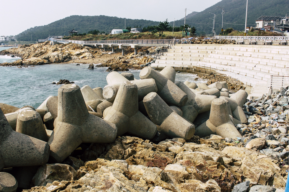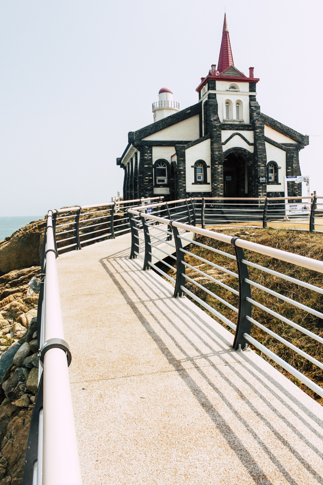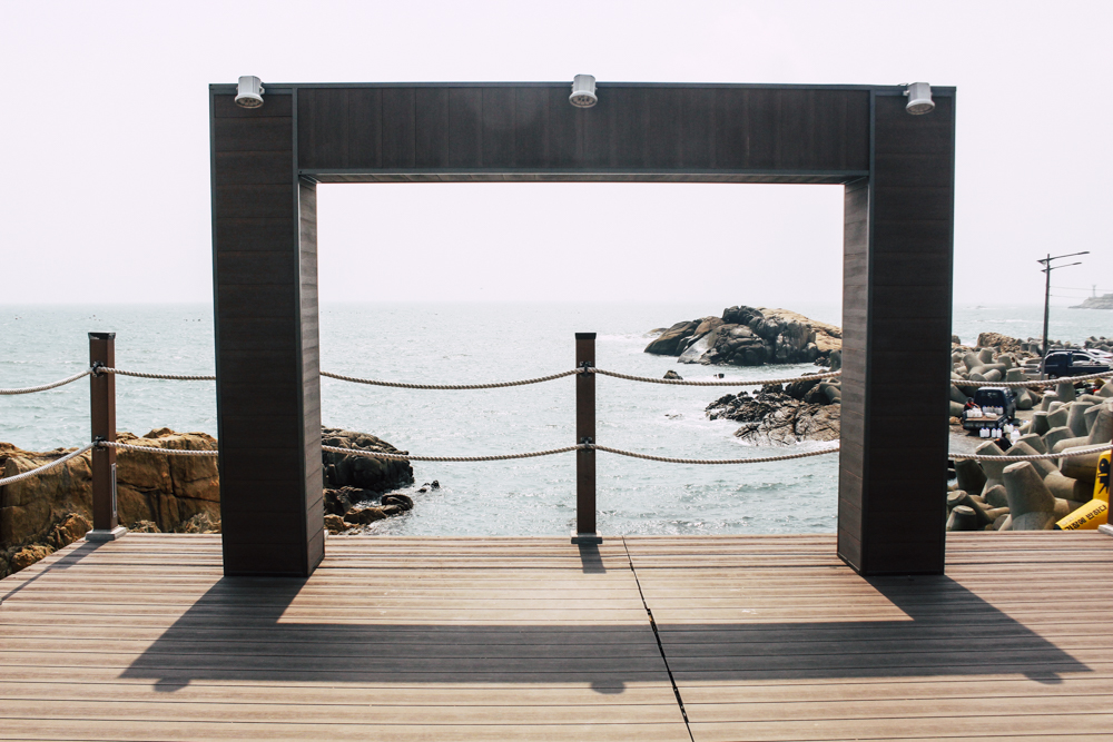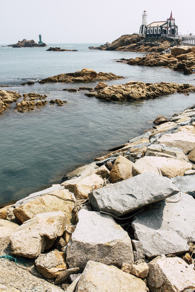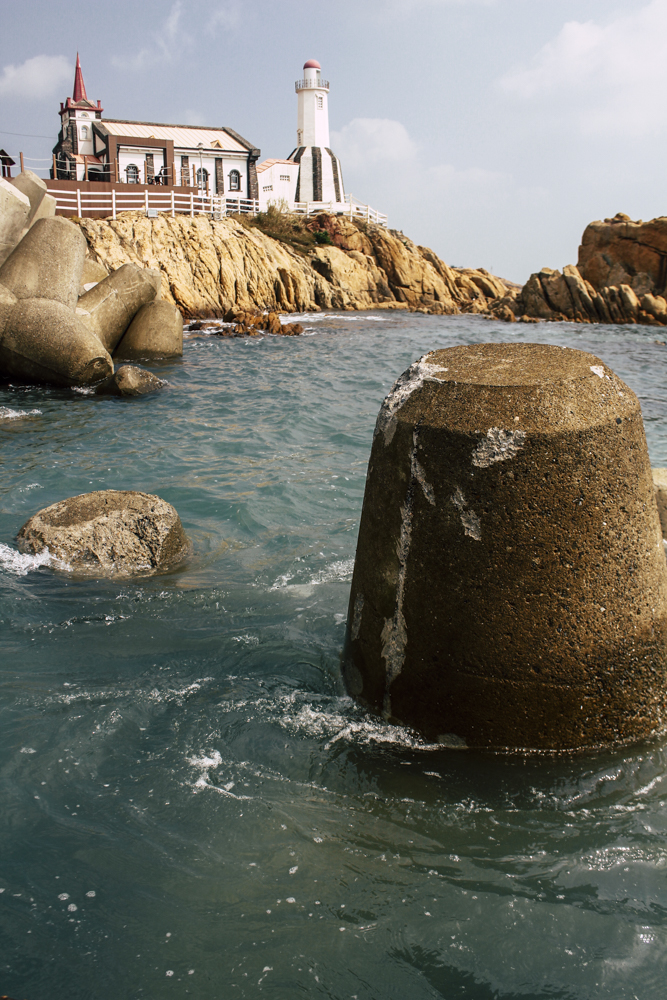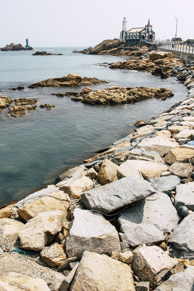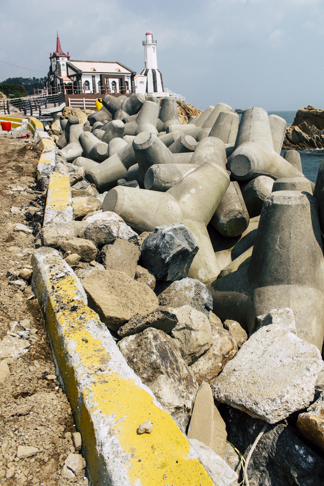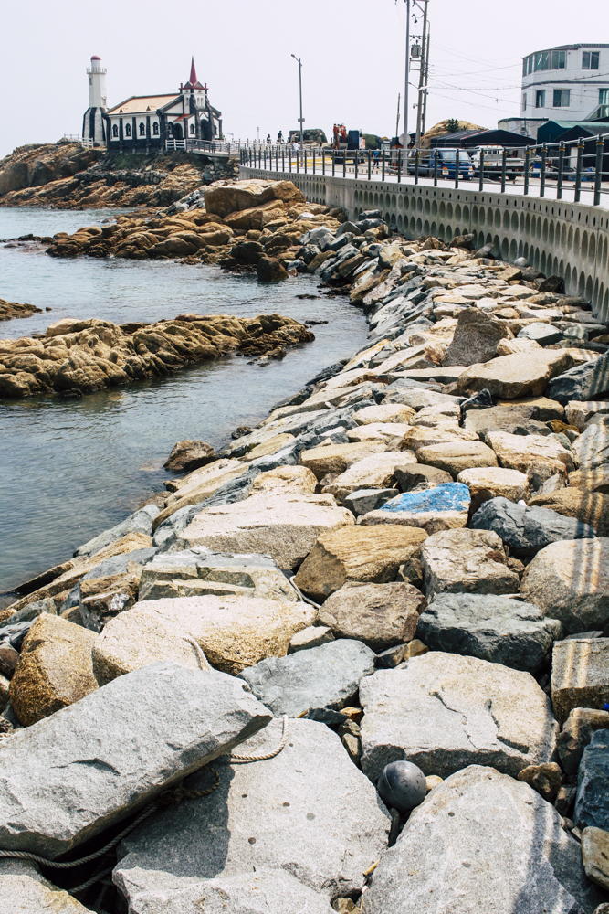 I’ve been nurturing a new habit, nursing it, even closer to forcing it. I’ve spent too many weekends in cafes and movie houses and not enough time seeing the country. On this day, I took a half-hour subway ride to Gijang, a county just north of the better known Haeundae. I’d been here before, a handful of times to Yonggungsa, the Buddhist temple by the sea. If ever there was a postcard. This time though I limited myself to a small stretch of orange-rocked coast near Jukseong Dream Church. Others have called it Jukseong Catholic Church or the more operatic descriptor cathedral. It’s neither. The building was constructed as a set piece for a 2009 television drama called “Dream.” You can pray but don’t expect Communion.