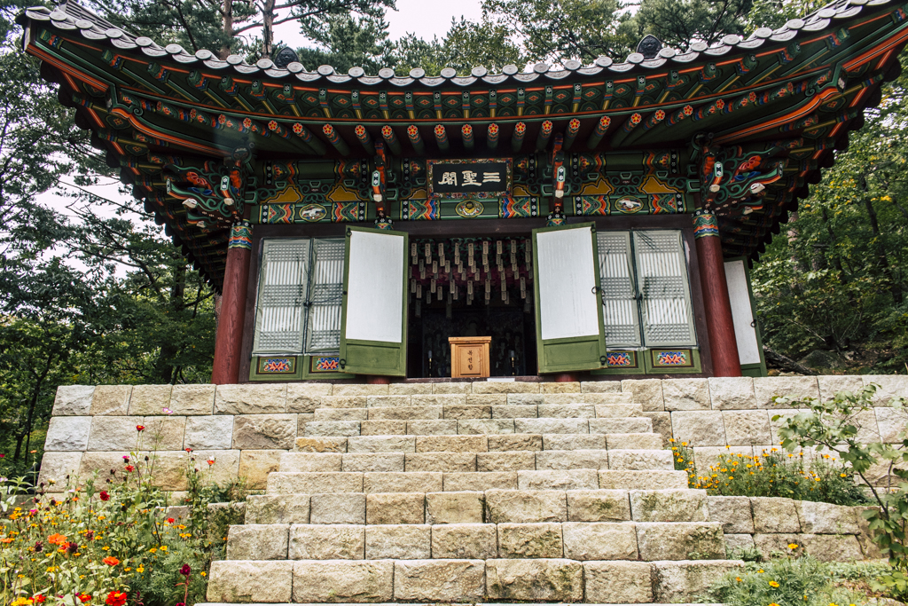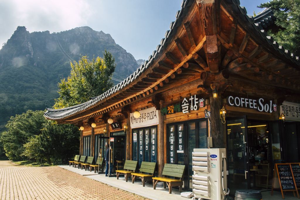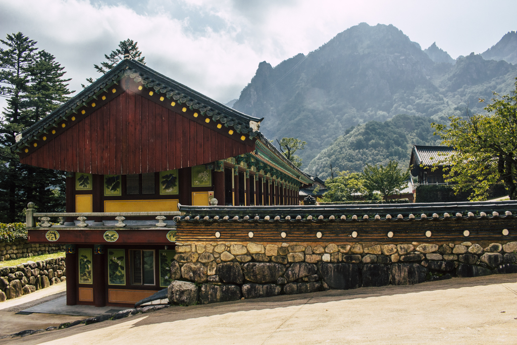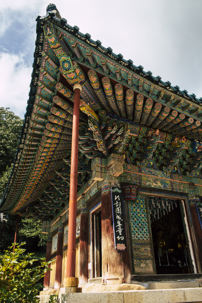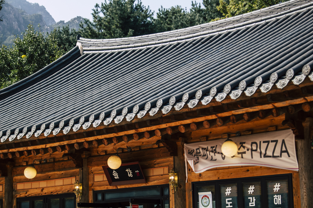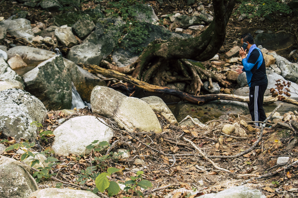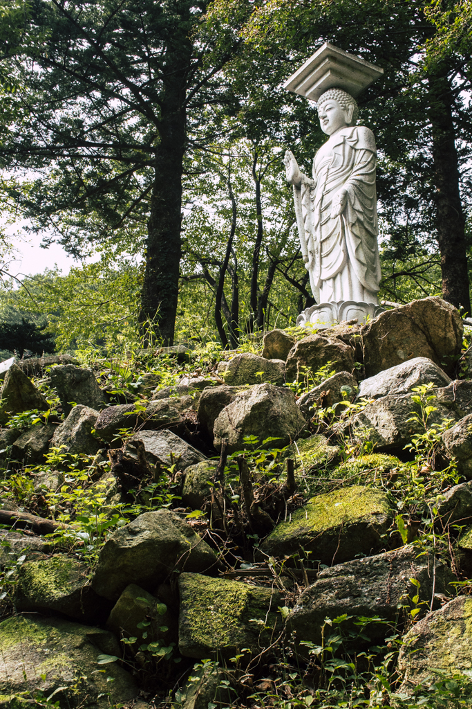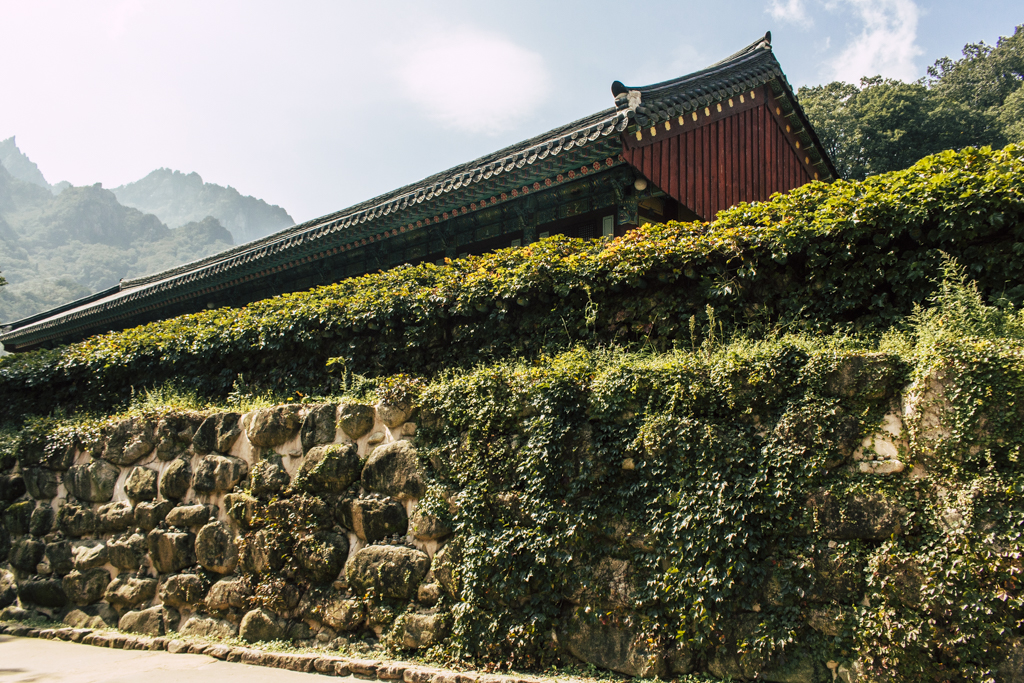 Day Three should have been more strenuous than it was. First I ambled through Sinheungsa, a Buddhist temple of the Jogye Order. The layout will be familiar to visitors of other Korean temples: the brilliantly fierce Four Heavenly Kings, the square inner courtyard and living quarters that flank it and the elevated main shrine hall. Under direct sun, the five-colored designs (“dancheong”) covering the pillars and wooden eaves almost glow. The plan from here was to continue on to Ulsanbawi (Ulsan Rock). This is the collection of granite finger peaks that along with Dinosaur Ridge so often advertise the park. The trail was muddy and slick in places but dried out in time. I eventually arrived at Heundeulbawi, an interesting site named for the boulder that is customary to try to roll though succeeding would surely end lives. Another Buddhist hermitage, Gyejoam, is uniquely placed at the scene with buildings and a shrine crouched within a mountain cave. After a look-see and some photos I sat gorging chocolate, an energy top-off. Then I backtracked. If there was a path that continued on to Ulsanbawi, I didn’t see it. If there was a sign (there was), I missed it. The fingers looked down from above and I took it as look, don’t touch. I’ll get ya next time.