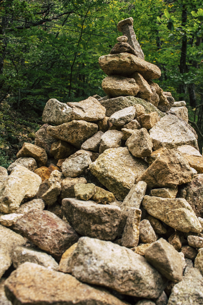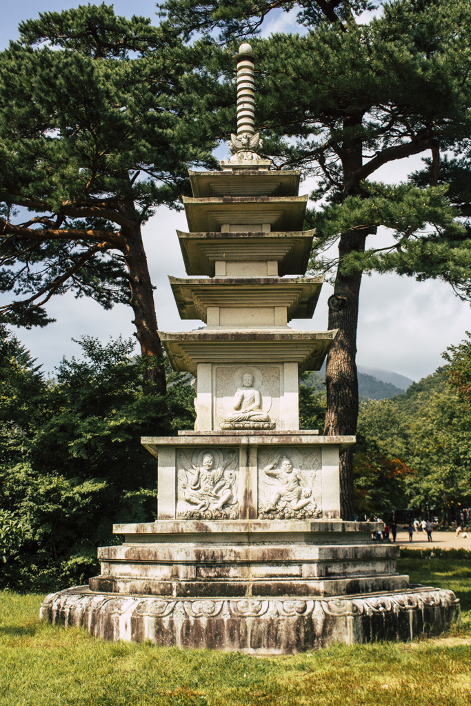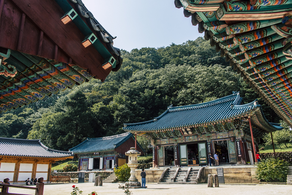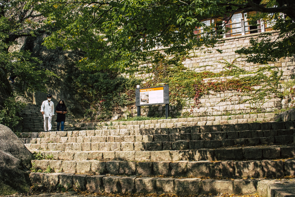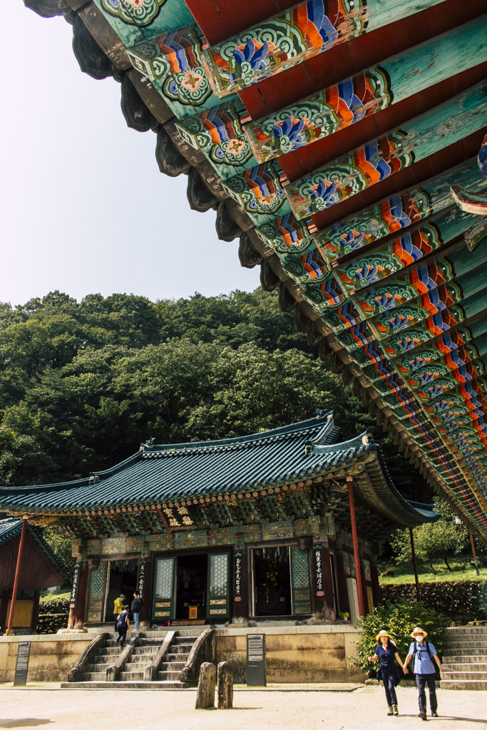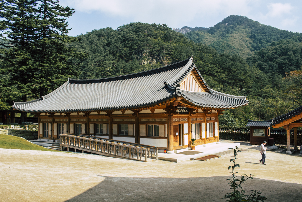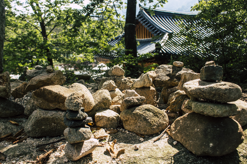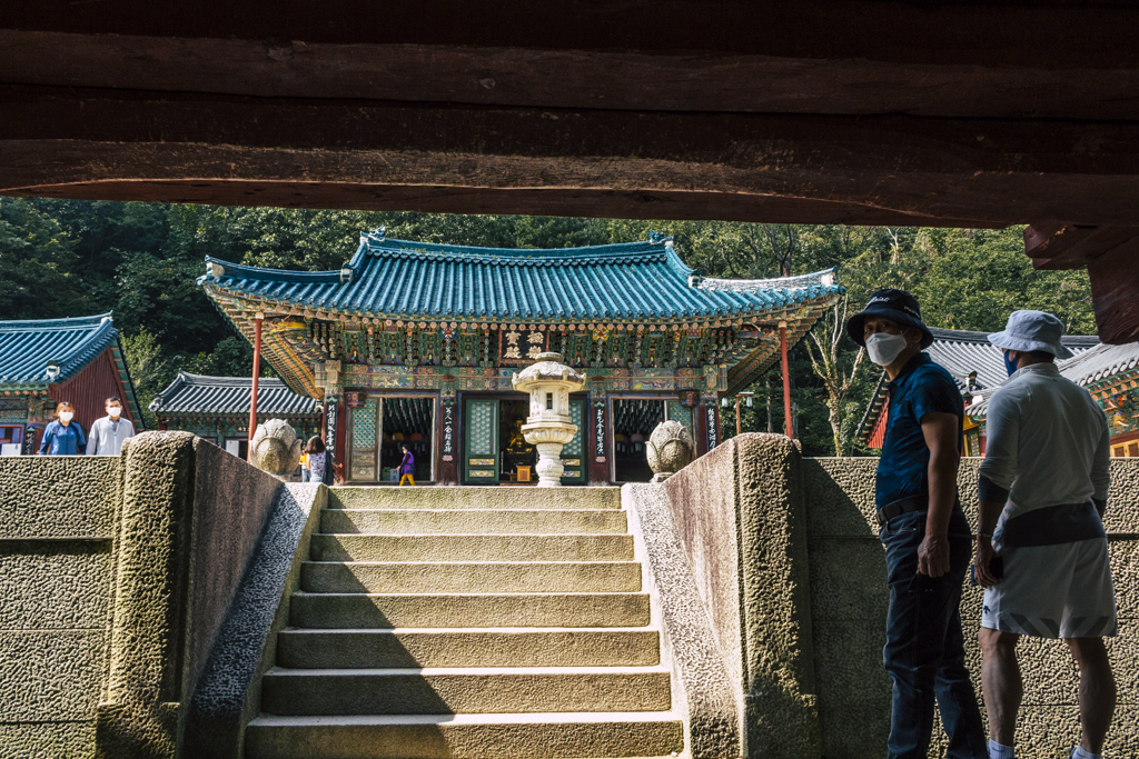 Day Three should have been more strenuous than it was. First I ambled through Sinheungsa, a Buddhist temple of the Jogye Order. The layout will be familiar to visitors of other Korean temples: the brilliantly fierce Four Heavenly Kings, the square inner courtyard and living quarters that flank it and the elevated main shrine hall. Under direct sun, the five-colored designs (“dancheong”) covering the pillars and wooden eaves almost glow. The plan from here was to continue on to Ulsanbawi (Ulsan Rock). This is the collection of granite finger peaks that along with Dinosaur Ridge so often advertise the park. The trail was muddy and slick in places but dried out in time. I eventually arrived at Heundeulbawi, an interesting site named for the boulder that is customary to try to roll though succeeding would surely end lives. Another Buddhist hermitage, Gyejoam, is uniquely placed at the scene with buildings and a shrine crouched within a mountain cave. After a look-see and some photos I sat gorging chocolate, an energy top-off. Then I backtracked. If there was a path that continued on to Ulsanbawi, I didn’t see it. If there was a sign (there was), I missed it. The fingers looked down from above and I took it as look, don’t touch. I’ll get ya next time.