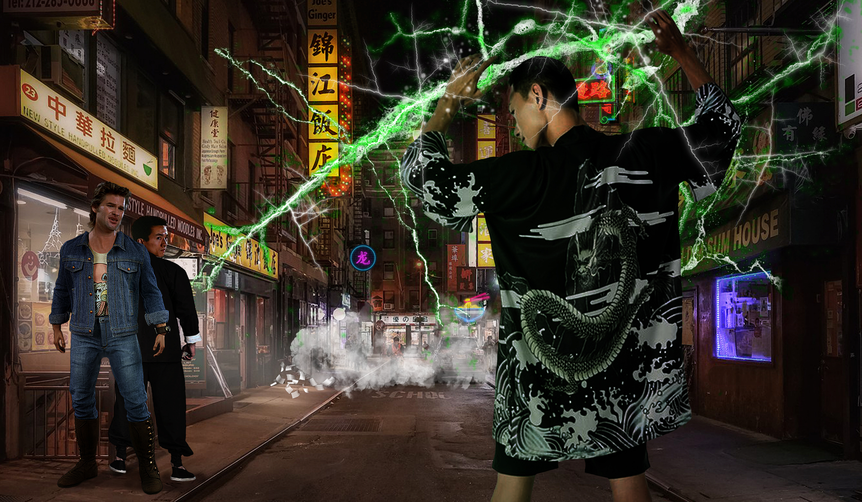 In “Jack Burton” we catch up with Jack (Kurt Russell) at his cabin by the lake. The lumbering, slobbering Wild-Man, last seen emerging from Jack’s rig, is somewhat pacified now and is his pet. Jack himself is up to his old tricks: hauling ass, gambling and pumping himself up on the CB. He’s also having bouts of dizziness but isn’t sure why. As the credits wind down, Jack receives a couriered letter from Wang (Dennis Dun) with cash. Egg Shen has died and Jack is asked to come to the funeral. He’s surprised but packs a toothbrush, leashes Wild-Man to a line that snakes through the forest and gives him a neck scratch goodbye. Back in San Francisco, Wang and Jack reunite along with Uncle Chu and Eddie. Beyond Egg’s death something is off but Wang denies it, until the funeral. There is none. Egg is comfortably in the ground, his death approaching three years, the traditional mourning period for a first-born son. Jack demands an explanation when they’re confronted by a band of Wing Kong, led by Lightning. He’s alive and wears a metal exo-skeleton to give him mobility. Lightning eyes Jack curiously and threats are made but this is hallowed ground. Jack feels faint and vomits on his shoes. At the restaurant, Wang comes clean. Egg has passed but his spirit energy, the essence of accumulated knowledge and power, lives. In Jack. As Egg had intended it, it seems. And on the three-year anniversary of Egg’s death, there it will stay unless moved to a permanent vessel by ancient ritual. Jack can’t believe his ears. “Cause no one would ever guess that this specimen of a working man holds the mystic spirit of the Motherland? I’m a damn safe house Wang!” “Come on Jack.” But things get interesting when Jack learns to channel the power of black magic.